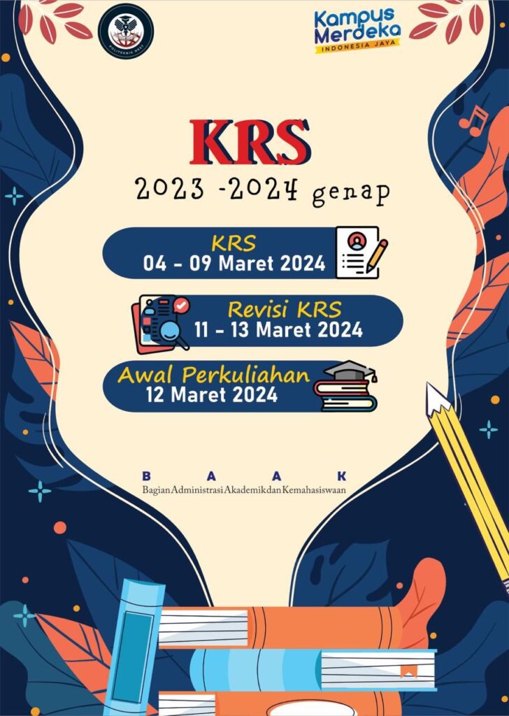 P E M B E R I T A H U A N Tentang KARTU RENCANA STUDI (KRS) SEMESTER GENAP TAHUN AKADEMIK 2023/2024 Sehubungan segera dimulainya Perkuliahan Semester Genap T.A 2023/2024, disampaikan kepada mahasiswa Politeknik Nest sebagai berikut : Read More …